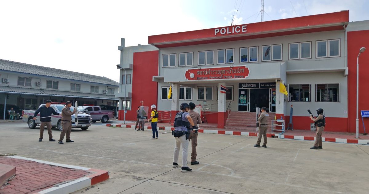 สภ.บ้านเบิก ซ้อมแผนระงับเหตุบุคคลคลุ้มคลั่งด้วยปืนตาข่าย (ปืนยิงแห) สายงานป้องกันปราบปราม