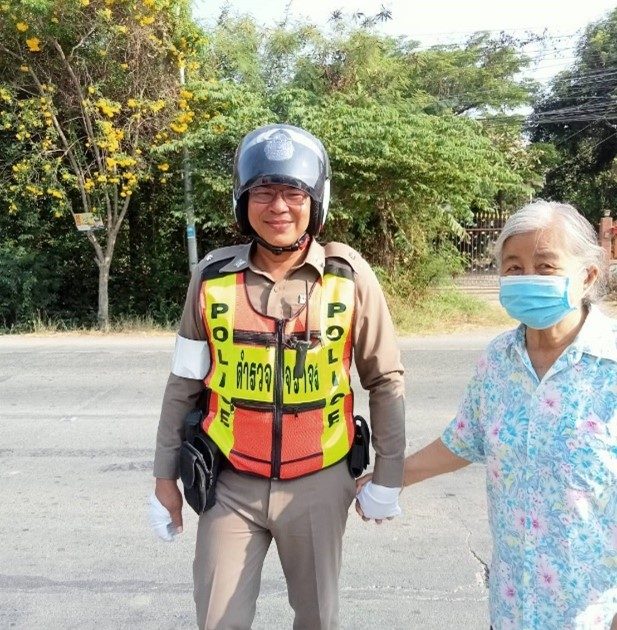 เจ้าหน้าที่ตำรวจจราจร สภ.บ้านเบิก ปฏิบัติหน้าที่อำนวยความสะดวกจราจรบริเวณ สี่แยกโพธิ์เกษตร