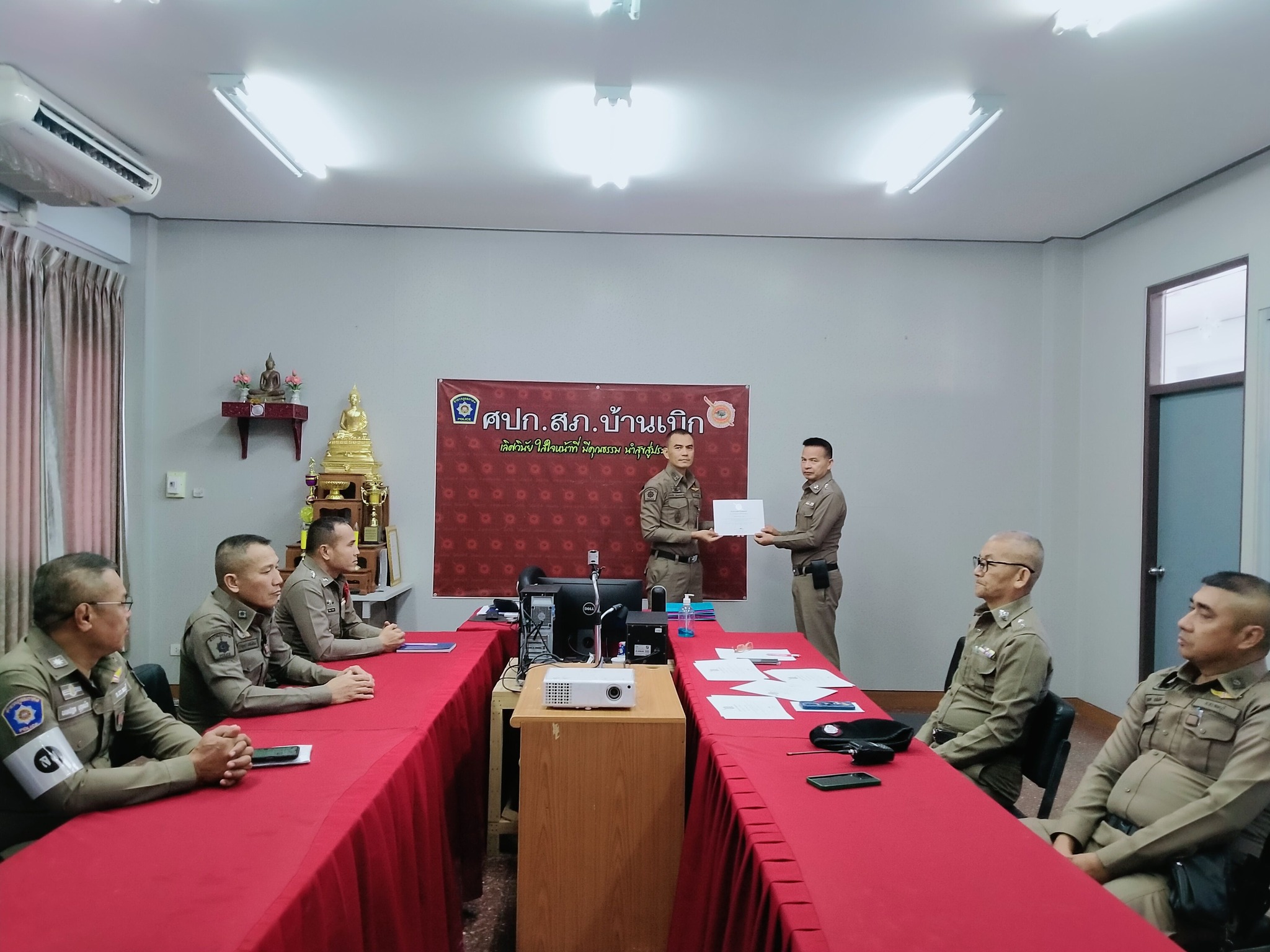 สว.สภ.บ้านเบิก พร้อมด้วยข้าราชการตำรวจ สภ.บ้านเบิก ประชุมชี้แจงนโยบาย และข้อสั่งการจากผู้บังคับบัญชา และมอบใบประกาศนียบัตร